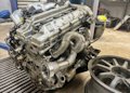 И вот однажды — случайно. В углу стоял R32, не готовый дрифтить, но с душой. Кузов — классика, обвес рокет Банни крылья и бн спорт все остальное, но взгляд сразу зацепился. Я открыла капот, и там — не рядная шесть, а настоящий VH45DE. Огромный алюминиевый V8, как будто сам дьявол спрятался под крышкой клапанов.