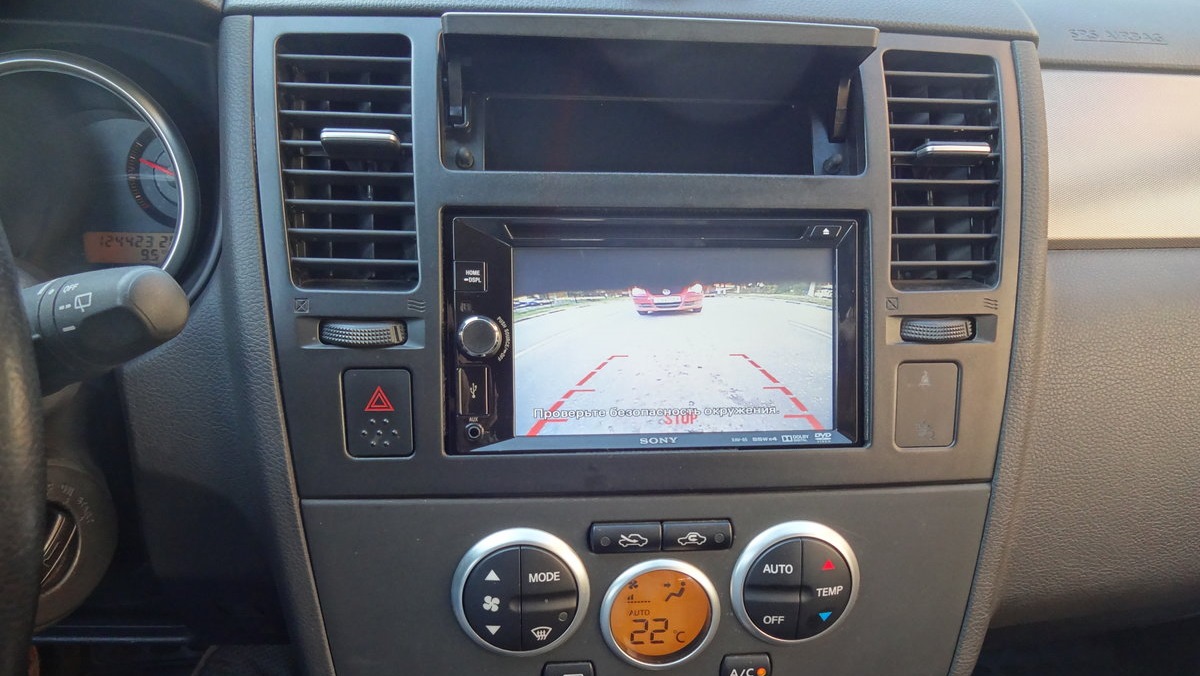 Музыка хорошая! Но ещё лучше стало когда было куплено головное устройство с, mp3, DVD, камерой заднего вида. По сути приобрел из-за камеры — "сутулая жопа" Тииды не позволяет контролировать движение задним ходом.