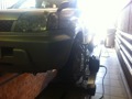 Машина оказалась в заводской краске, естественно бампера и крылья не проверить, но поверили хозяину на слово, что без ДТП. По подвеске — на замену один рулевой наконечник, одна тяга, все втулки стабилизатора и ! ГУР. Обломило лепестки в самом насосе, и руль крутился только если поднять обороты.