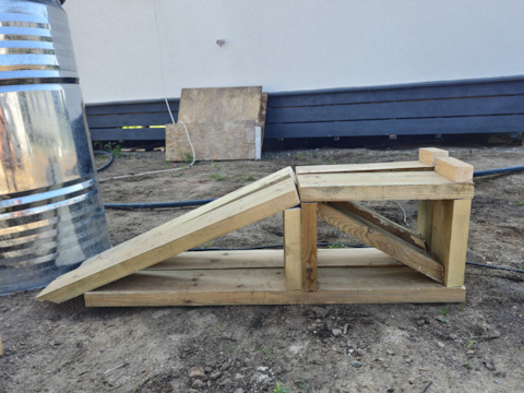 На даче решил это всё и провернуть. Из остатков доски 150×50…
