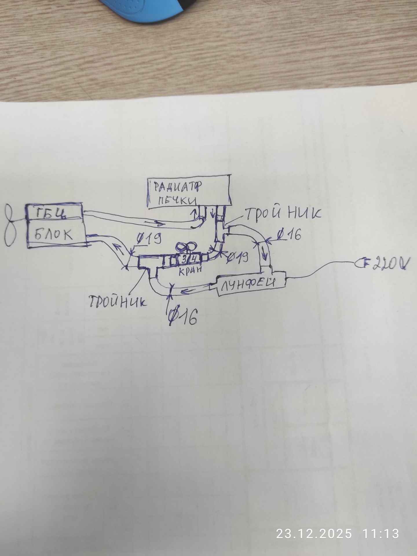 И снова здравствуйте! В течение трёх последних лет владел Ниссаном Экстрейл 2005 гв на 5 ступенчатой МКПП. Машина в принципе нравилась но как ехать на дальняк хоть увольняйся, при скорости 100 км в час на 5 передаче тахометр казал 3000-3100 оборотов. Дальше больше, в общем не по гоняешь особо. Продал, купил в следующем кузове, такого же цвета, тоже на палке, но уже 6 передачь вперед. Тест драйв порадовал, при 100 км в час на 6ой передаче тахометр уже 2400-2500 показал оборотов. В прошлой машине единственный колхоз сделал подогреватель тосола на 220 вольт, знаменитый Лунфей из Поднебесной мощностью 2 кВт, просто тупо врезал в шланг обратки печки, и всё бы ничего, но зимой на холостых оборотах печка начинала дуть холодным воздухом. Прогазуешь нагревается. На новой машине решил заколхозить по новому! Как говорится колхоз дело добровольное, но полезное. Теперича будет так : в шланг обратки врежу два тройника 19/16/19 а между ними кран бабочку на 3/4 внутренний диаметр его чуть меньше 19 мм, со штуцерами на 19 мм по наружке. Отводы на 16 мм пойдут на Лунтик. Единственное неудобство что каждый раз при включении подогревателя надо закрывать кран, иначе нагреваемый тосол с Лунтика ( хитрый гад ) идет не в блок, а обратно вверх к радиатору печки (физика), а после прогрева в течение 30-60 минут в зависимости от минуса на улице надо просто повернуть бабочку и циркуляция печки пойдёт нормальным образом без заужения патрубка обратки. Всё это дело опробовал опытным путём как говорится на весу. Сейчас всё это дело маракую уже штатно, красиво по фен-шую. Закрепил как положено лунфей, чуть вверх выходом чтобы не воздушился, ставлю новые патрубки, штатный не резал а взял в запас с собой, мало ли чего. Фото чуть позже, подвёл озон, немного срок доставки перенесли, жду новые тройники литые металические. Пластиковые больше не использую, был с ними горький опыт. Фото немного позже.