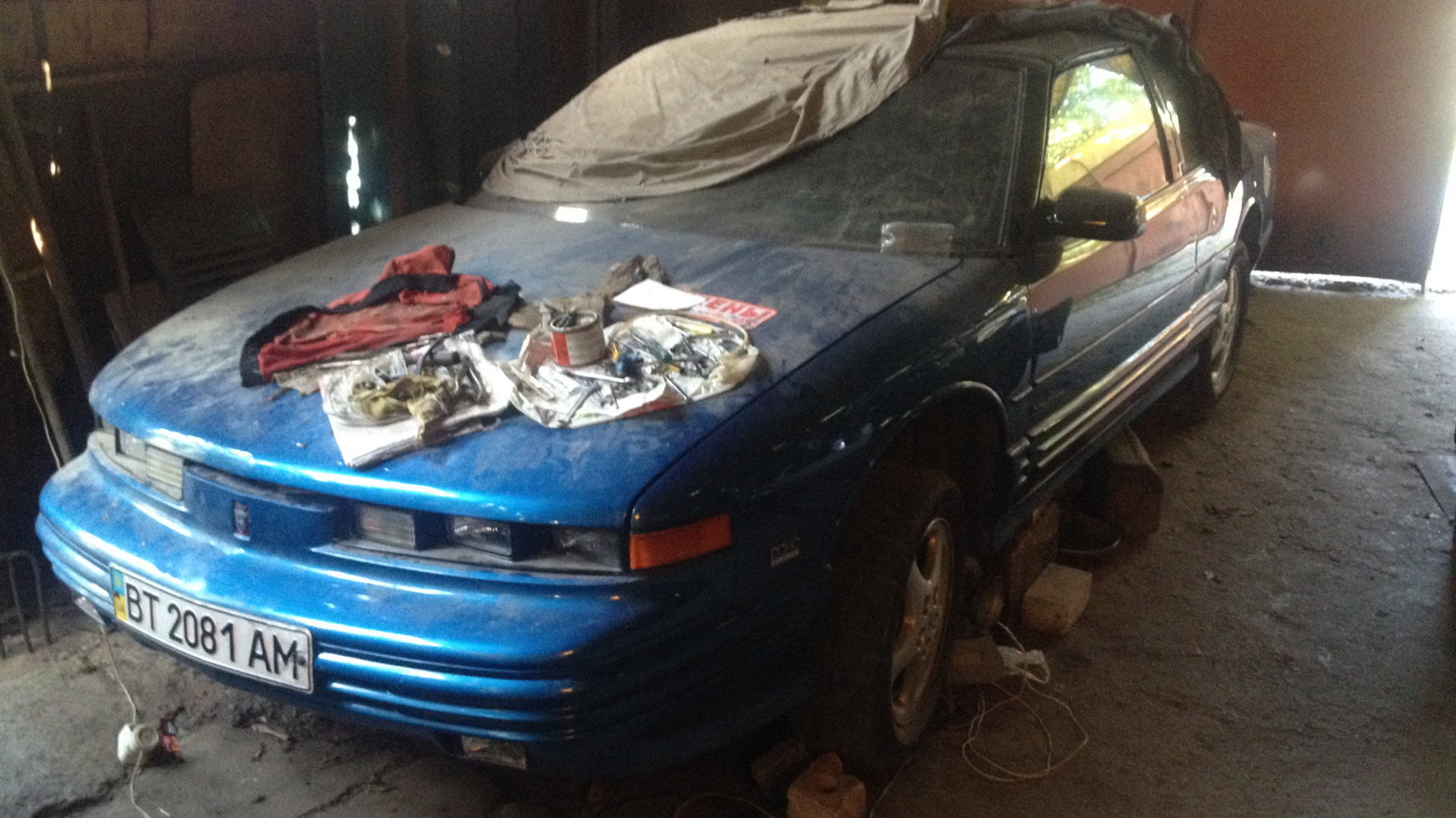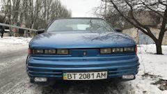 Мы с моим отцом долго выбирали какую же машину купить, пересматривали кучу вариантов на определенную сумму, и он обратился к своему старому знакомому в помощи осмотра машин( очень хорошему механику ) который тоже предложил свою машину нам на рассмотрение, мы её в живую не видели но нас на тот момент смутил один вопрос, машина с двигателем объемом двигателя в 3,4 литра, и еще меня смутило название Oldsmobile, так как я сразу полез в интернет и там мне выбило очень старые авто и необычные( на тот момент мне не понравилось ), и поэтому мы смотрели другие объявления, и как то раз пригнали к нему одну машину, и он сказал что она нам не подходит, ржавые пороги и т.д. но это все было скрыто очень неплохо, мы отказались и человек уехал, но как только мы зашли в гараж к этому знакомому, мы были шокированы( мне это напомнило американские передачи про находки старых достойных тачек, так как она стояла в гараже без движения уже около 3-5 лет вся в пыли, и почему то у меня в голове сразу прокрутились воспоминания о гоночных машинах "NASCAR" ) и не зря, потому что эта модель принимала участия в этих гонках, и очень удивили фары, так как они тройные и поворотники находятся не по краям морды а самые ближние к центру, но её спортивные формы и красивый вид перебили все недостатки, и сразу без раздумий посоветовавшись с отцом мы решили забрать эту машину, год назад, долго и усердно мы восстанавливали все ходовые характеристики этой машины, и до сих пор этим занимаемся, сразу вопросы встали по ходовой, генератор и на данный момент капитальный ремонт двигателя, в дальнейшем перешивка крыши, салона ( обшивки и т.д. ), возможно оклейка пленкой( или освежить эту краску ) электроникой уже занялись от части, практически все готово, главное что даже при покупке по большей части все работало исправно, полный электропакет( стеклоподьемники, регулировка зеркал заднего вида, регулировка положения водительского сиденья, открытие крыши, магнитола, климат контроль, мультируль ( климат и магнитола ), ABS — так же присутствует )