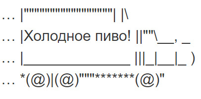 Наверно на телефоне не корректно отображается, смотрите на ПК. Это буквами рисованный мчащийся грузовик с пивом.