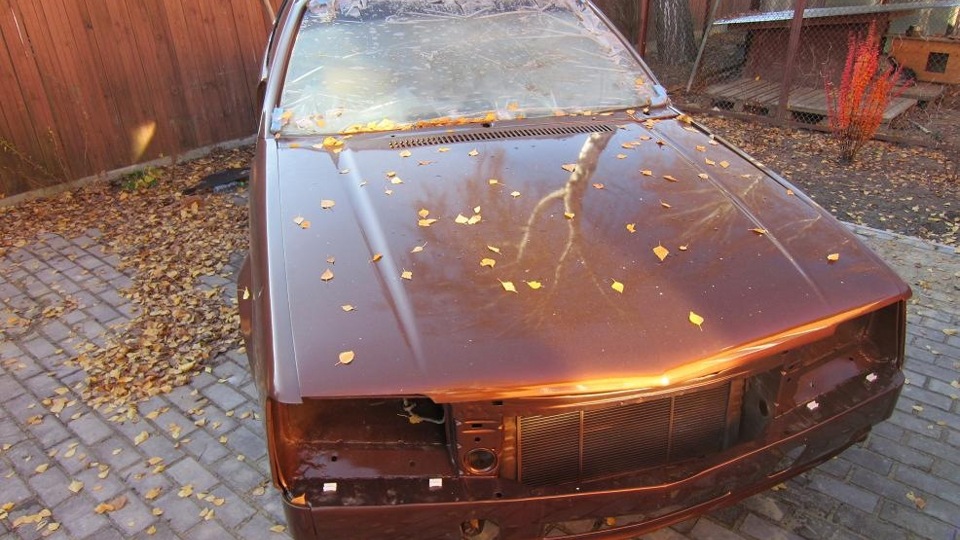 Но, посмотрев на проделанные с кузовом работы и критически оценив состояние донорской морды, от этой затеи решено было отказаться.Жаль конечно, ведь уже были найдены отичные фары, капот, бампер…Ну да ладно.