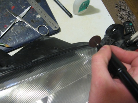 уже закреплённая лента на декоративной вставке фары