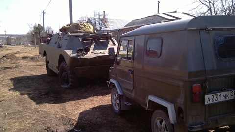 В моем парке пополнения — это БРДМ-2РХБ, — предстоит много работы по реставрации, ремонту, поиску деталей — много, много еще чего, ЛУАЗ 969М рядышком