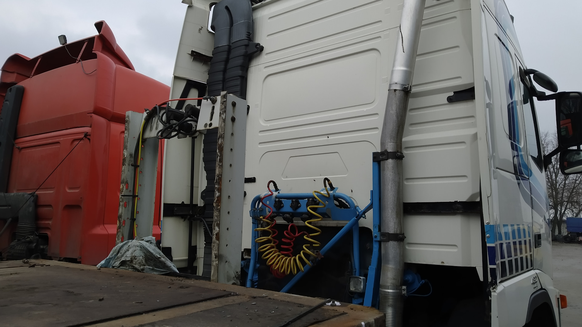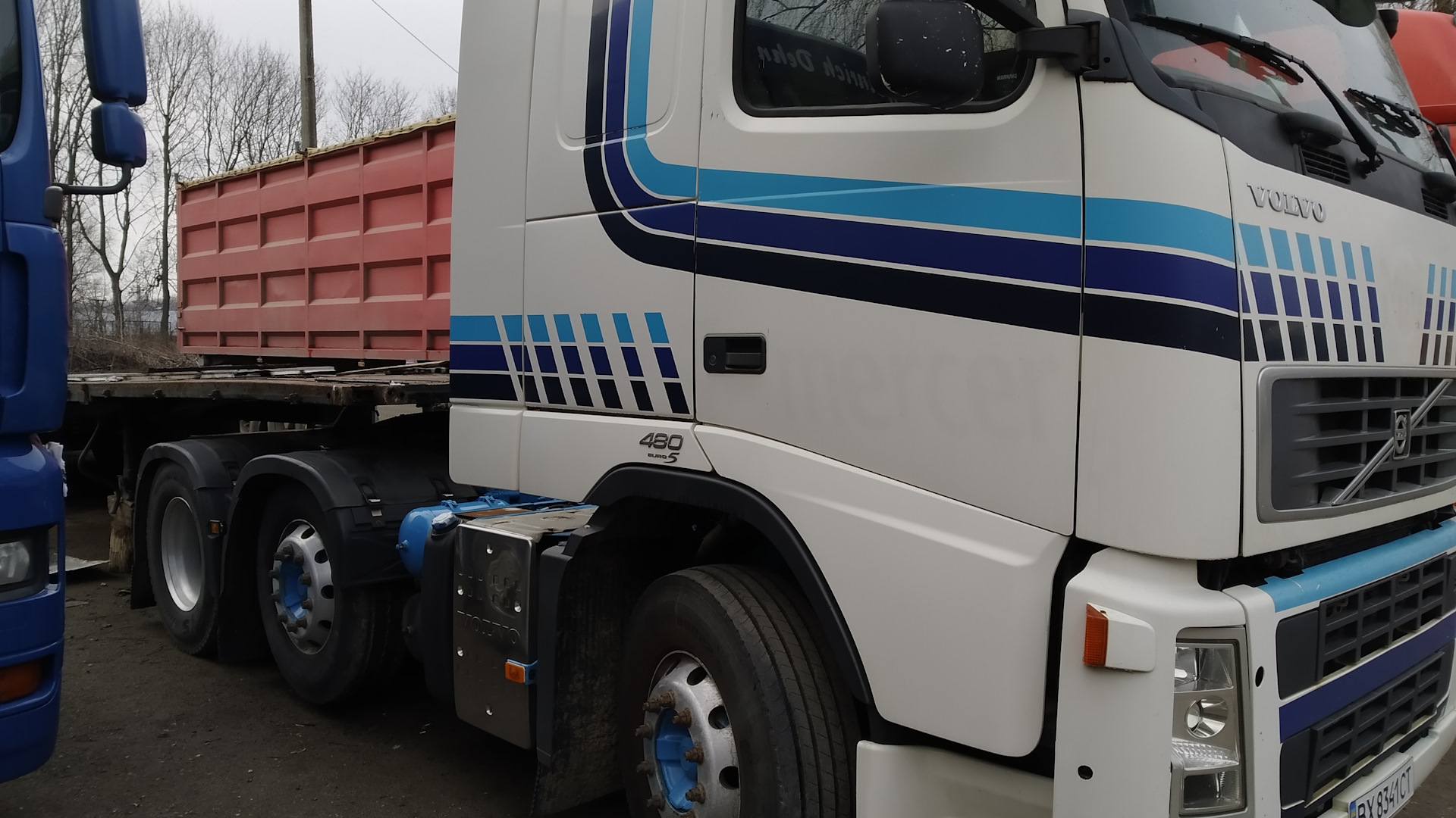 Всем привет, так сказать взял себе еще одного тягача, на этот раз вольва фш 13 правда с колесной формулой 6х2, так как у меня прицеп контейнеровоз можно мне 44800 грузить по норме если сцепка 6 осная, Даф будет перецеплен к другому прицепу он будет просто контейнеровозом легким что бы тара была по минимуму, а уже самосвал будет за вольвой