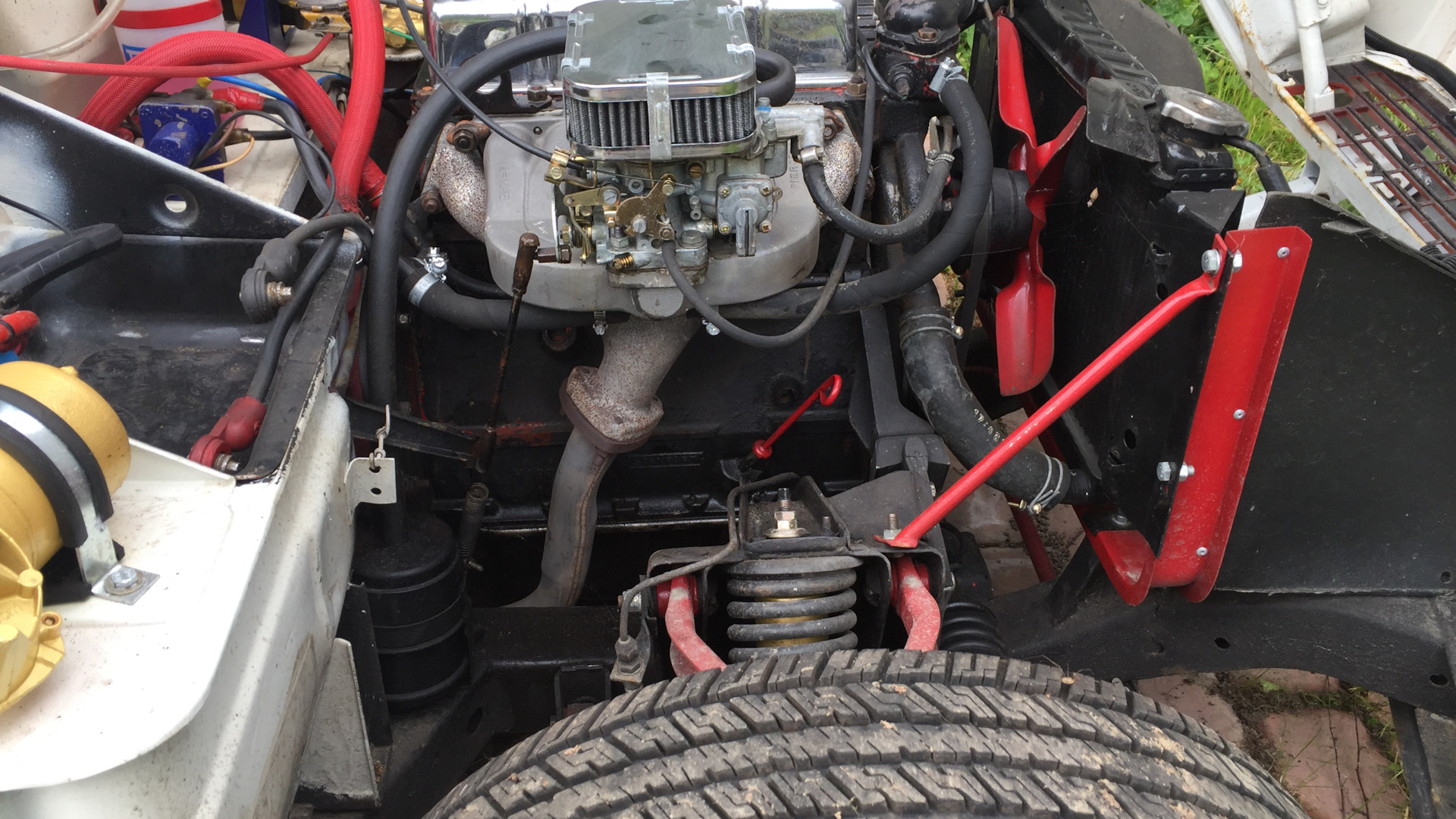 Обычный карбюраторный атмосферник 1.3 литра. Лишних проводов нет, все необходимое.