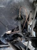 Заметил непонятную вибрацию при работающем моторе на холостых. И пока доехал до дома звук стал ещё хуже, по итогу сломало кронштейн двигателя и он прилёг на один бок.