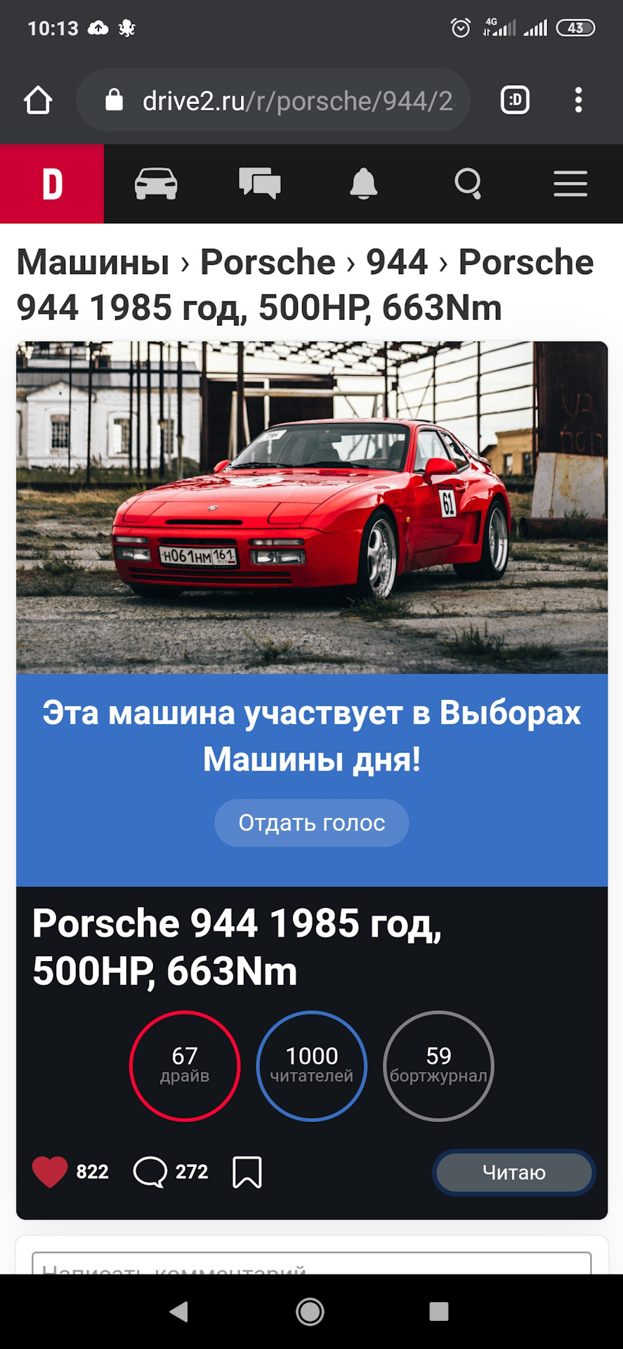 Голос Плюс за 944-ю. Подпись и Репост за такое Авто… Респект хозяину за проект… Победы на Выборах…