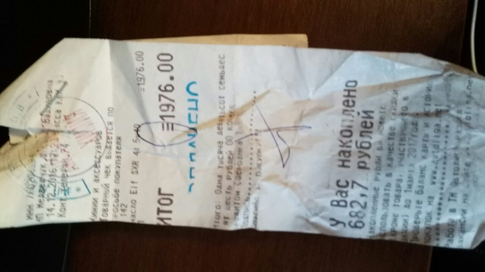 Перед Новым годом, 2016-2017 года купил и поменял масло в коробке и масляный фильтр. Масло ELF SRX 4л. 5w40. Цена масла 1976 рублей, приобретено в Автолиге Центр Ярославль.