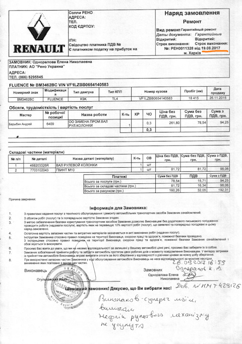 - Рено Украина. Гарантия — ее отсутствие. Часть 6 (подделка документов).
