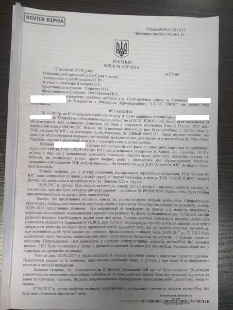 - Рено Украина, новый авто. Гарантия — ее отсутствие. Первая инстанция.