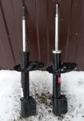 -передние амортизаторы KYB. Передние пружины родные, но амортизаторы KYB от Dacia Logan дали занижение в 20 мм.