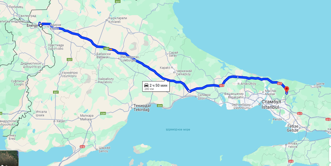 в спорах рождаются только споры. Я ничего не имею против 2000 оборотов, это нижний предел допустимого и скажу откровенно, что и сам часто "сдуваюсь" до 2000 (задумавшись), хотя стараюсь держать 2200-2500, 2000 допускаю лишь на пустом (не всегда дорожная обстановка позволяет держать нужные обороты, бывает что в текущих условиях скорость уже будет высоковата на необходимых тебе оборотах). По этой причине я имею острую необходимость иметь еще хотя-бы пару передач — между 3 и 4 + между 4 и 5, а еще очень нужна понижайка, чтобы при длительном передвижении по разбитой дороге на скорости 3-5км/ч (вспомним Казанку) можно было крутить мотор хотя-бы до 2000. Но 2000 допустимы на 4й передаче или максимум на 5й (при небольшой загрузке), но ни как не на 6й. Даже на пустом бусе повышенная 6я крайне слаба, на скоростях ниже 120 она попросту не тянет от слова совсем. Единственный раз в жизни, когда я воспользовался 6й это на автобане от КапитанаАндреево по направлению на Измит (приблизительный маршрут на скрине). Но я был легко гружен (около 500кг), 6 полос в одну сторону, 6 полос в другую, асфальт как яичная скорлупа, я заняв средний ряд со скоростью 130км/ч, слева летят, справа уходят на развязки, я проскочил более 300км менее чем за 3 часа, ехал на полном расслабоне, буд-то со скоростью 80км/ч и совершенно не устал от скорости, за всё время ни разу не переключил передачу, ни разу не коснулся педали тормоза и ни разу не перестроился на другую полосу. Средняя скорость получилась около 120км/ч (в жизни бы не поверил если бы мне такое рассказали). Расход по компу был около 9.5-10.5л/100 по мгновенному (суточный я не сбрасываю). Так вот для таких условий 6я и применима, но даже в той ситуации я бы не шел на 6й 100 или даже 110 — мотору это ТЯЖЕЛО! — разве это не чувствуете?