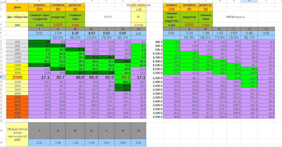 Передаточные числа КПП + главная передача позволяют рассчитать обороты при определённой скорости.