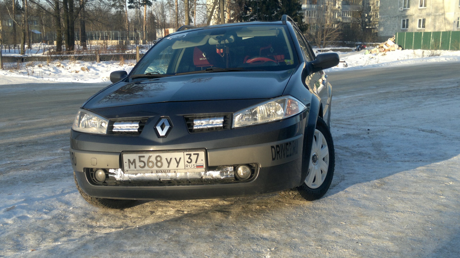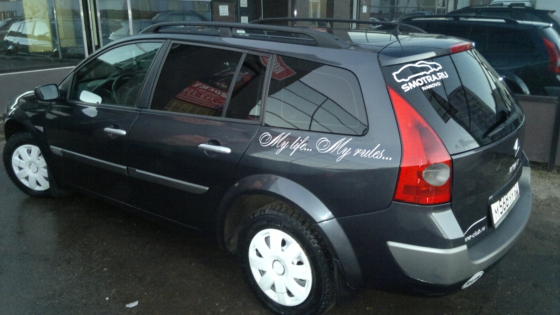 Ну вот и поменял свою десятку на Renault Megane Grandtour II турбо-дизель (Бычок). Машиной очень доволен. Дизель очень экономичный. Сейчас осенью с прогревами показывает 6 литров на 100 (с десяткой не сравнить. у нее под 10 было). Родился он во Франции, пригнали в Россию в 2011. У меня он с 16 сентября 2013. Я второй хозяин в России. Пробег по бортовому компьютеру ~145 000 км. Комплектация оказалась богатая, куча подушек, круиз-контроль, климат-контроль, под рулевое управление магнитолой (Магнитола не штатная "SONY" — это "+", куча кармашков, датчик света, датчик дождя, ну и так до бесконечности. Перед покупкой с товарищем загоняли её на стенд, где умельцы проверили ходовую и двигатель. Диагноз — авто здоровый! Это порадовало, правда через две недели всё равно пришлось поменять: саленблоки, и все расходники, (заказал чехлы хорошие, дабы салон не портить… теперь летает и радует с каждым днём))))