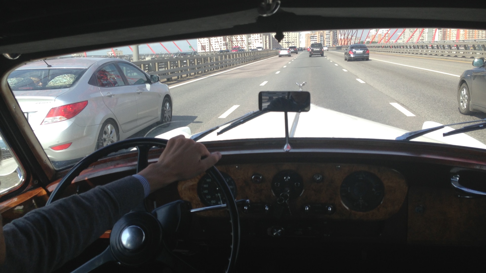 кладу трубку и не понимаю, что делать… понимаю, что нужно что-то делать а что я не понимаю! Подъезжает за мной и мы едем. на вопрос куда, молчит. И вот мы на пороге Таможенного терминала. зашли, бумажки, квитанции и прочее. и вот мы внутри, огромная стоянка, ламбы, майбахи, ретро америкосы и прочее. поворачиваю взгляд и она стоит одна, вкруг пустота, и взгляд мой как фото на зеркалке, есть фокус, фокус на роллс, вокруг все размыто! Брат протягивает ключи и говорит. НУ ВПЕРЕД… я в топоре, стою и как дурак, идти не могу, говорить не могу! В общем стою, получаю пинок))))) иду, подхожу открываю… Я был настолько ошарашен, что не заметил убитой кожи на сидушках, потолка который выцвел, ржавчины на кузове и прочего!