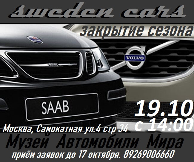 19 октября с 14:00 у музея Автомобили мира (г. Москва, самокатная ул 4стр34) пройдёт последняя в этом году встреча владельцев Вольво и Сааб.