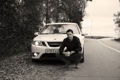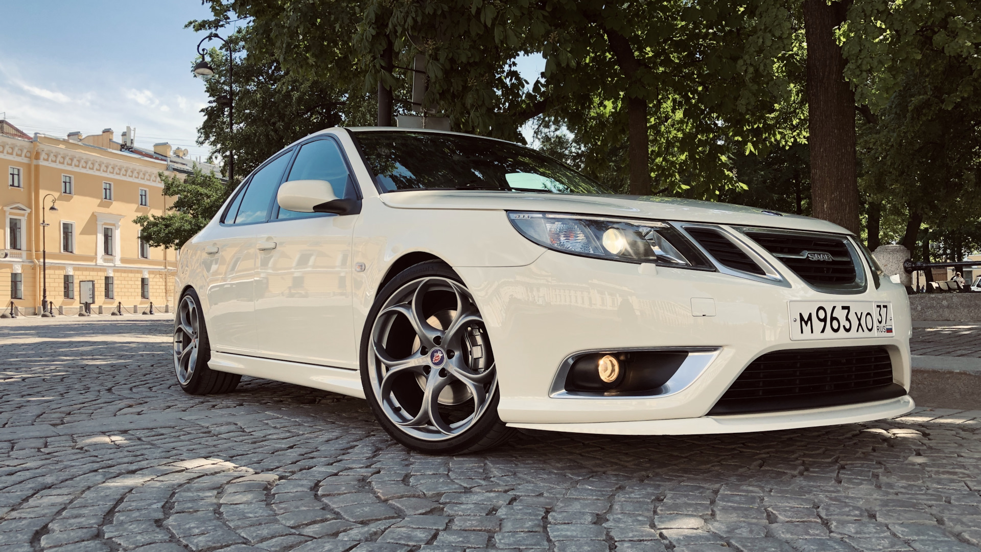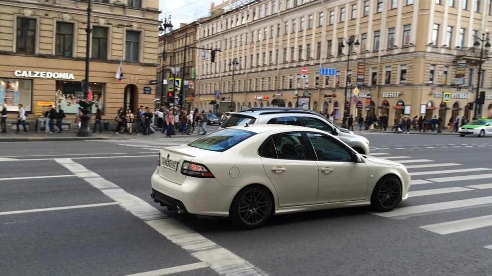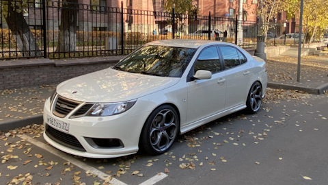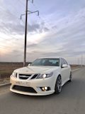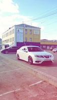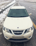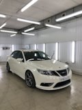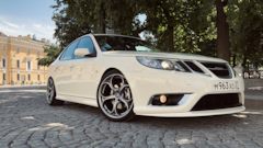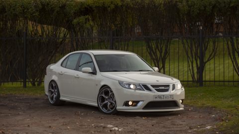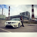 SAAB 9-3. Белый Турбовый. Двигатель более двухсот сил, от свиста турбины можно "оргазмировать". Салон — чёрный, кожа. Коробка — механическая (предпочитаю только её). Музыка — Bose. И все это летит на 19-ых дисках (235/35 & 265/30). Практически идеальная машина для меня, всегда хотел только её. Купил 3 июля 2009-го, думаю что никогда не смогу с ней расстаться. Моя машина — Моё лицо.