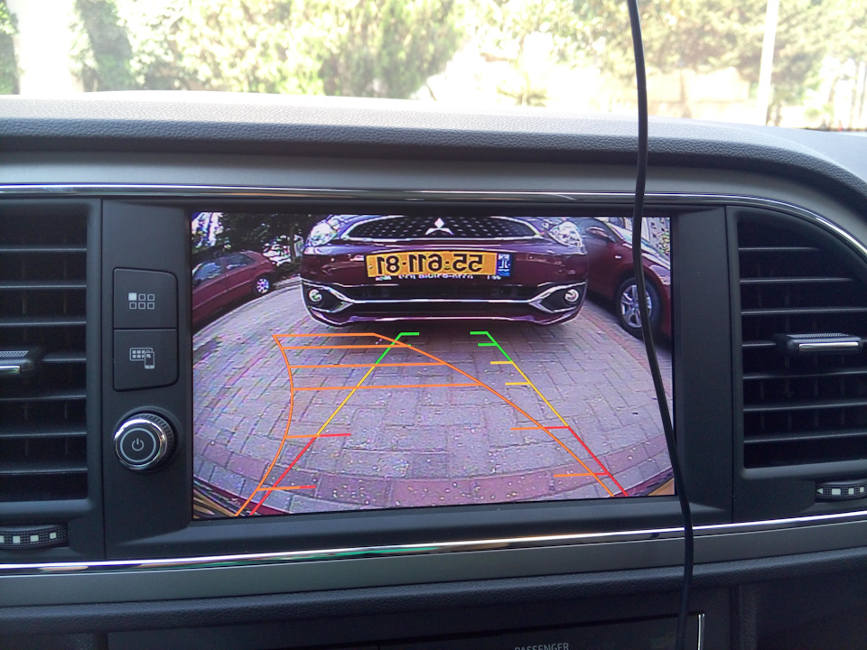 не на оригинальном показывает до милиметра можно столбы по камере объезжать