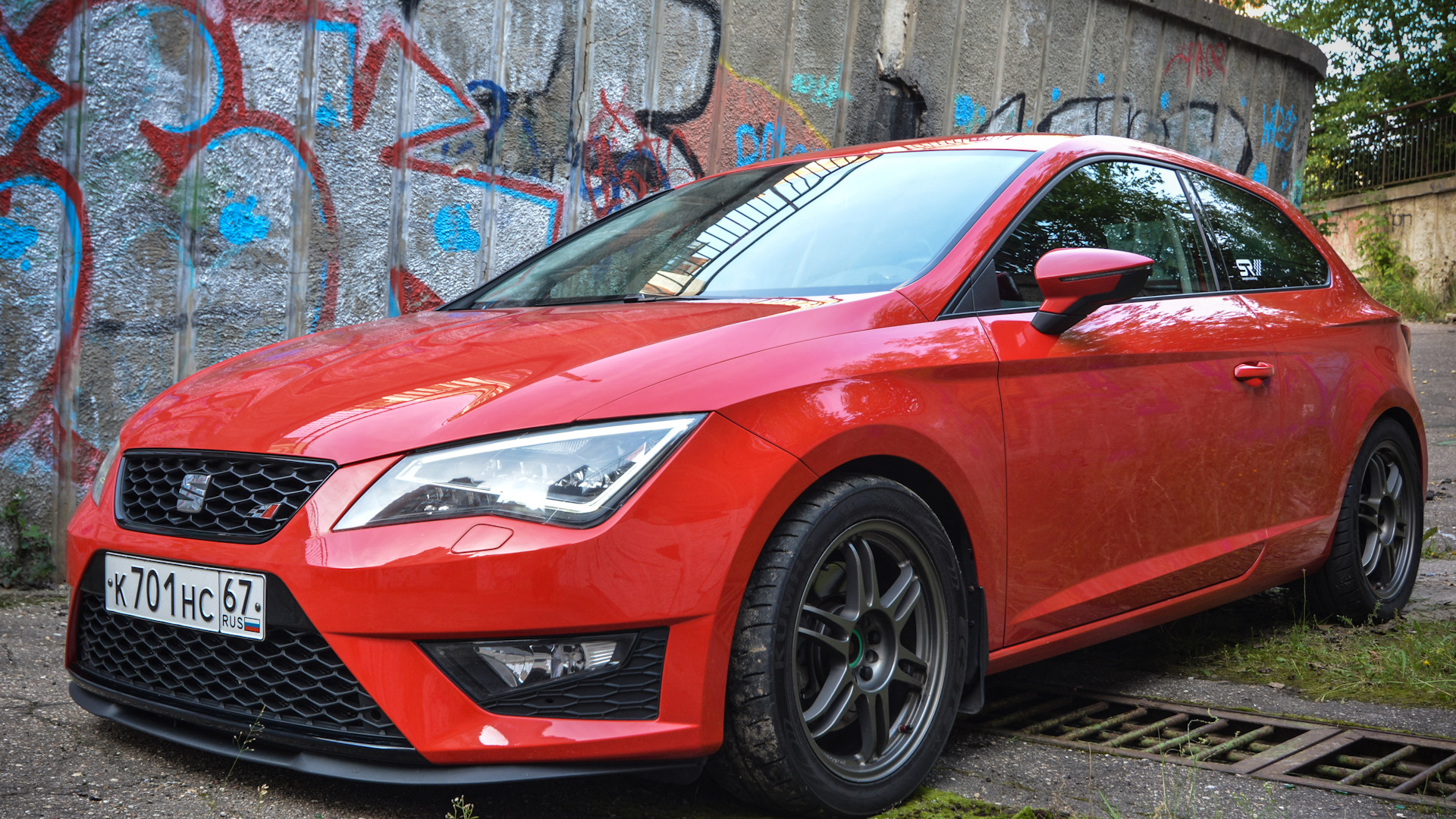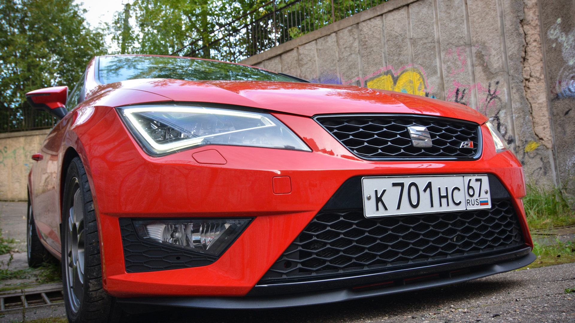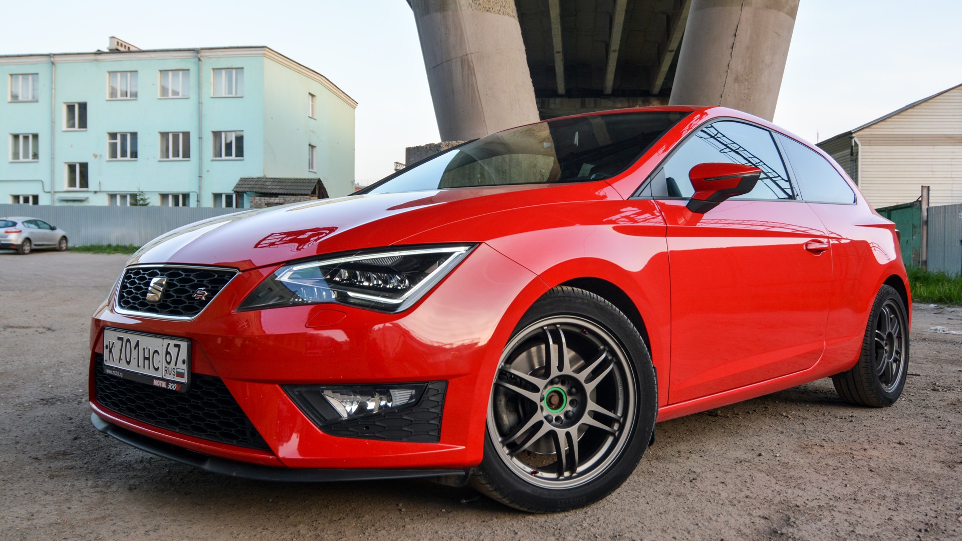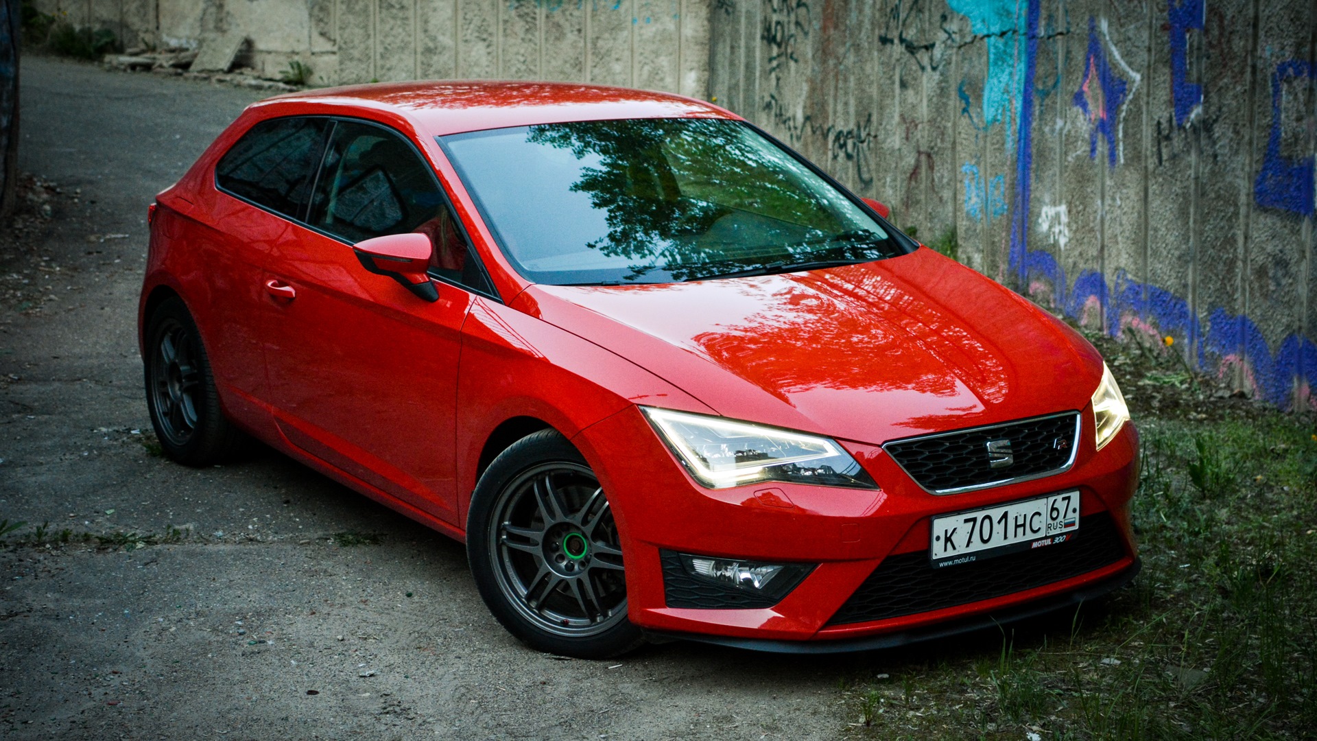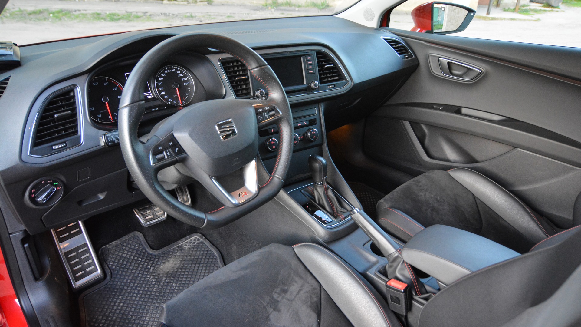 В ноябре пополз курс рубля, мысль купить новый автомобиль появилась сама собой. Как вариант рассматривал Astra J GTC, уж больно нравиться мне этот кузов, но не хотелось 1.6 т и хотелось DSG. Поэтому VAG, а именно Seat как лучшее соотношение цена/качество среди соплотформенников. Обзвонил всех дилеров Seat в Москве — в наличии были три автомобиля в комплектации FR 1.8 TSI DSG: серый, зеленый и красный. Долгие споры и обсуждения по поводу цвета и выбор пал на фирменный сеатовский Emocion Red.