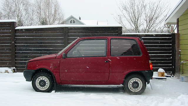 Специально обученная зимняя машина. Куплена за 25 тыр с дырявыми полами и ржавыми порогами, залатана и кое-как подкрашена, внутри все переделано к бениной маме.