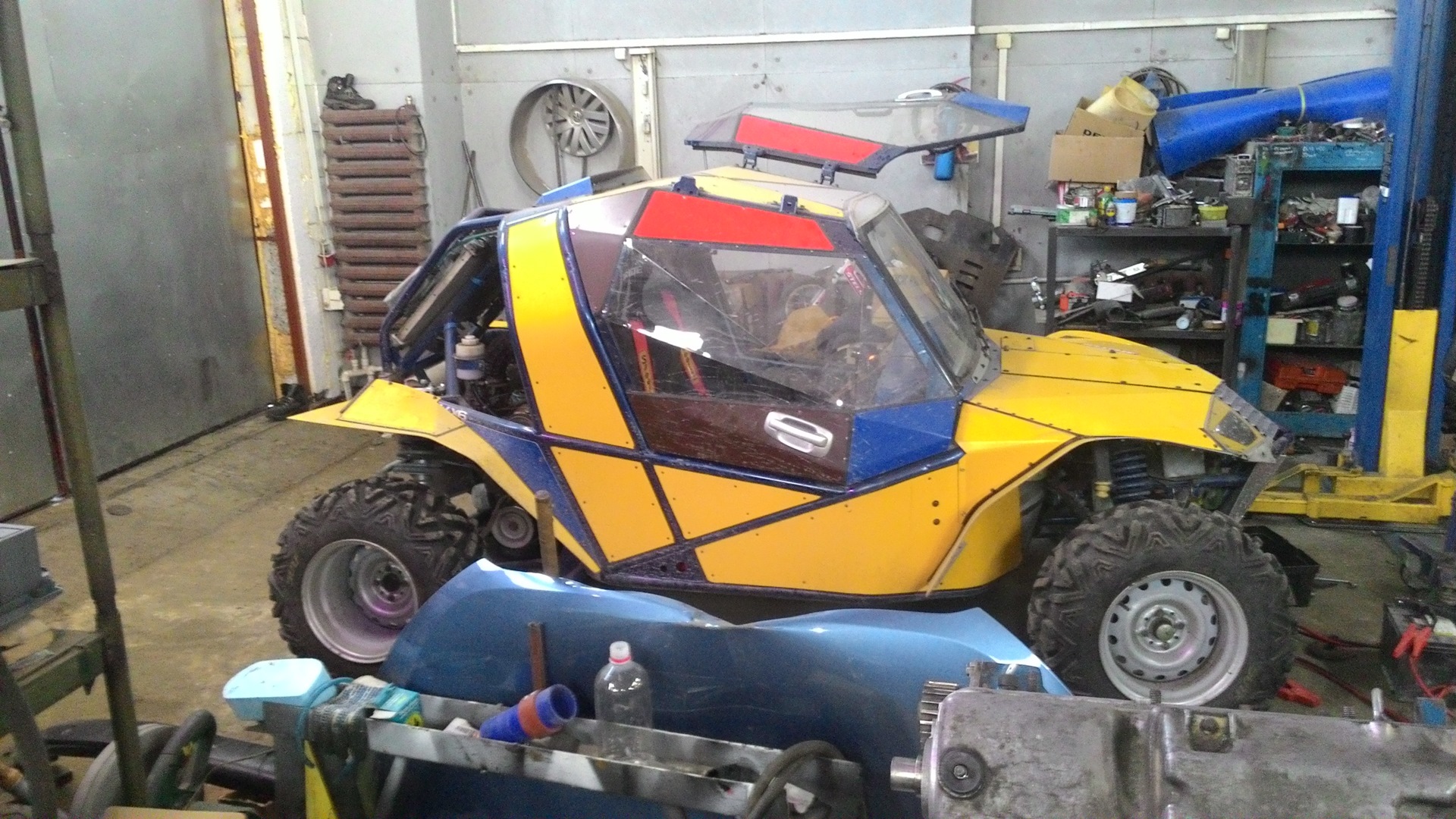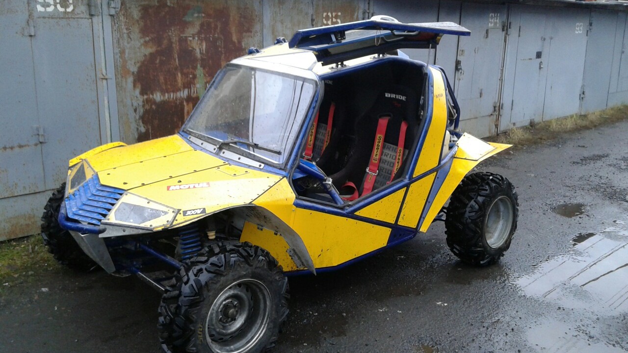 В принципе на этом движке можно неплохо ошибиться и убраться) До сотки уверенный разгон, больше на такой резине по бездорожью начинает кидать. Поэтому сделанны такие развалы чтобы по грунту уверенней идти. С движком больше 150 будет хороший разгон это да. Но проект был создан с учетом минимальных вложений в дальнейшем. Если даже его увезти в деревню в глубинку, при поломке можно будет легко найти запчасти и заплатив минимум. Хотелось создать аппарат, такой чтобы несильно бил по корману и все было в наличии. Планируется на вазовский движек установить турбину. Движка в районе 7000т. остальное по знакомым и по сервисам, трубы папинги и тп. Тогда можно будет только блок менять раз в 2 года. Голова и все остальное дольше ходит. А блок в районе 3000. На хонду даже не знаю