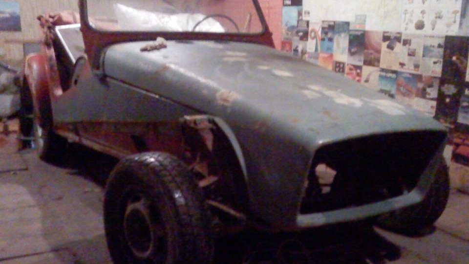 Началось все после визита, по какому то вопросу, к знакомому сварщику. Приехав к нему и зайдя на територию СТО увидел ЭТО…) Автомобиль построенный человеком очень давно. История этой машины долгая и запутанная и конец у нее мог быть плачевный — авто хотели порезать на металолом, но не в этом суть. Увидев его не мог спокойно спать. После некоторых размышлений и подсчетов было принято решение выкупить авто и довести до состояния нового ( реплика Лотуса 7). На данный момент состояние машины плачевно металоломное. Строилась эта машина еще в семидесятых и для того времени, как мне кажется, проделана просто фантастическая работа. Построена она на ВАЗовских агрегатах. Думал переделать на агрегаты БМВ, но для начала решено взять за основу все те же ВАЗовские агрегаты хотя и основательно их доработать. Что касается внешности, это не копия. Дорабатываться и частично перестраиваться внешность будит, но мне понравилась в этом авто индивидуальность при схожести с той машиной на которую ориентировались. По сему мы попробуем улучшить эстетику, добавим современности, но при этом постараемся сохранить дух первоначального "материала".