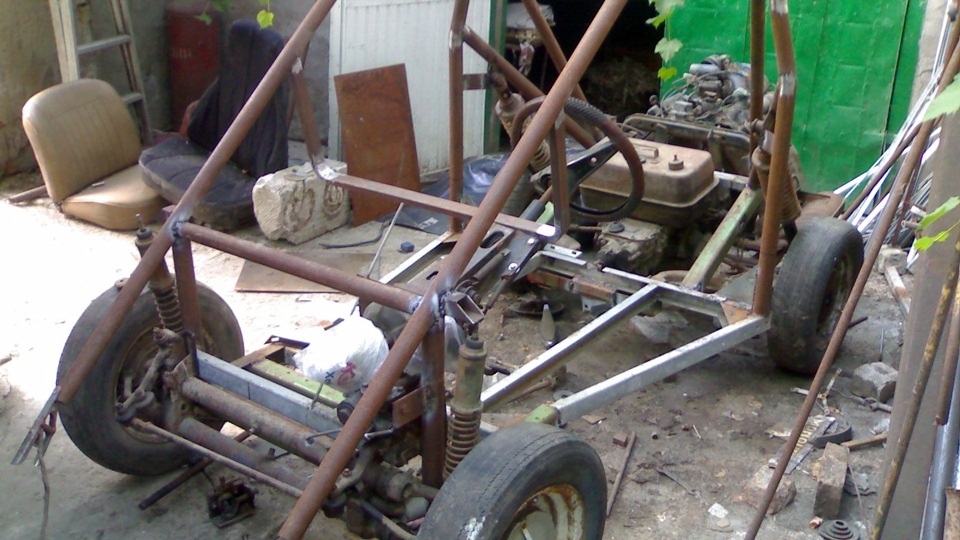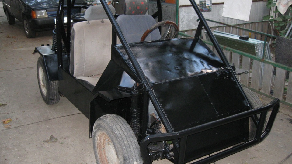 ну начну сто го что я разбил свой первый автомобиль заз.жалко было сдавать на метал и я решил дать ему вторую жизнь.с начало думал сделать кабриолет но случайно увидел в Инете багги на базе заз и решил сделать багги и начал искать чертежи в интернете .перерыл много сайтов нашёл только фото наброски корче я делаю сам без чертежей .разобрал заз до последнего винтика и начал икать материалы .мне повезло тем что родители подключали газ .трубы остолись .сечас я почти закончил мешает зима .хочу поставить резину от волыни но не могу найти где купить…