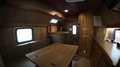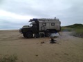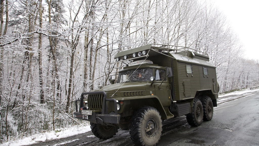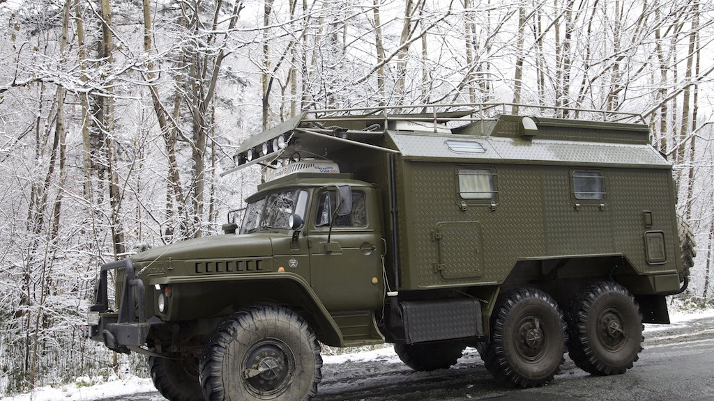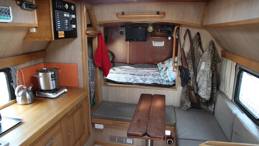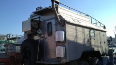 Двигатель КАМАЗ 740, топливный сепаратор на 24в, тормозная система от FUSO, кабина расширена в сторону кунга на 15 см, что позволило установить сидения от Гелендвагена, в кабине кондиционер на 24в, в кунге кондиционер на 220в, 2- вебасты "мокрая" и воздушная, 2-газовых болера на камбузе и душевой (японские полный автомат), стационарный био-туалет, встроенный холодильник на 12-24-220в, инвертор 24=220в 50Гц, бензиновый эл.генератор с дистанционным управлением из кунга на 3кВт 220в 50Гц "Дометик", водяное отопление от двигателя или от вебасты, так же дровяная печка, аккумуляторы 2х190а/ч и 2х220а/ч(гелевые), полноценная раковина на камбузе и вытяжка ''Дометик", в спальне жидкостный подогрев кровати, пол с эл.подогревом, спальных мест 3+1, 2 яхтеных люка на крыше выдерживают вес человека, кунг обшит 2мм рифлёным алюминием, обвязка кунга уголок 3мм из нерж. стали, леера на крыше из толстостенной нерж. трубы, запас топлива 600л, две канистры с запасом бензина для генератора и бензопилы, запас воды 300л зимой, 500л летом. Вода подаётся через гидрофор, по левому борту имеются изолированное водо-защищённое багажное отделение, с правого борта технический отсек, кормовая мех.лебёдка, носовая эл.лебёдка, 2 ящика для сухих дров в кормовой части кунга из 3мм нерж.стали, кормовая аппарель с креплением для мотоцикла, верхний свет ксенон, защита картера и бензобаков 8 мм сталь, дополнительный ресивер и эл.компрессор воздуха, съёмная кран-балка для погрузки резиновой лодки на крышу, GPS-TV-DVD… высота внутри кунга 2м.