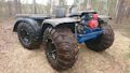 Вездеход имеет небольшой вес 701кг, уверенно преодолевает болота, колеи, снег и водные преграды (плавает), Установлен вариатор саыари, коробка ваз 2105 4 ст, карданы ваз. Поворот осуществляется через кулак увата. Мосты ваз классика. Карданы от классики. Очень прост в обслуживании и надежен. Собирал 5 месяцев.