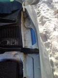 Лёд на пороге у переднего нижнего угла двери