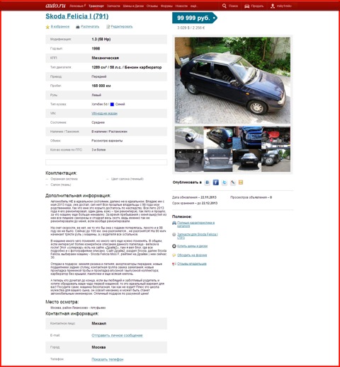 В общем, продаю фелицию, хочу за нее 60 000 рублей. Считаю, что цена вполне достойная, так сказать — "цена = качество". Удивляют люди, ко…
