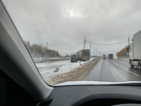 Протестировал резину: попал в ледяной дождь на пути из Орла домой.