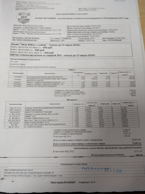 Всё в полном объеме. Авторусь предоставила скидку 20% на запчасти и сколько-то процентов на работы.