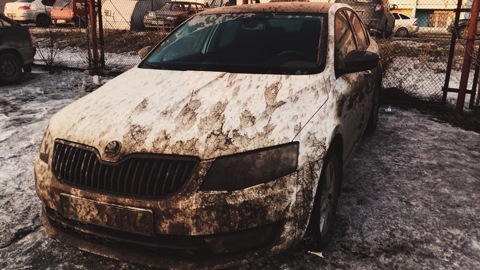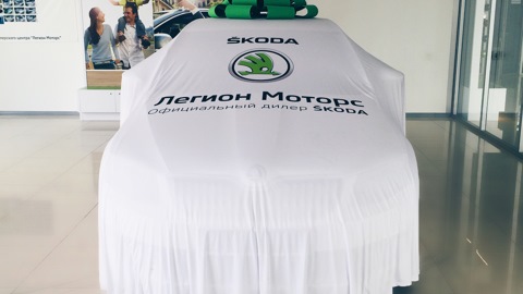 По счёту, кстати, третья Октавия у него. Все были красные — он бывший пожарный ))