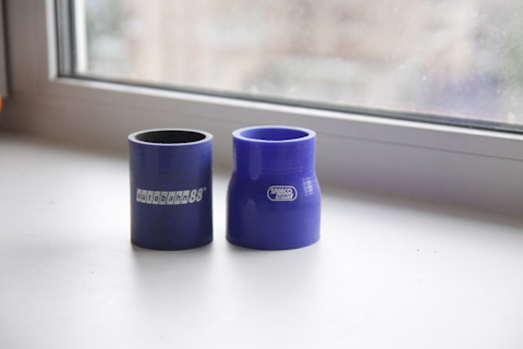 1) Силикон. Прямой 2" и прямой с расширением до 2.5". Брендовый, вроде как. Цену сами предлагайте.