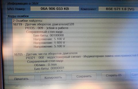 - Выход из строя датчика оборотов коленвала VAG 06A 906 433G Шкода А5 1,6 bse (горит желтым ASR, Чек ДВС, сильно троит при запуске, тяги нет).