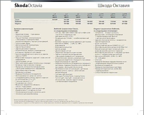 - Комплектации и цены Октавия А5 2011-2013 г.в.