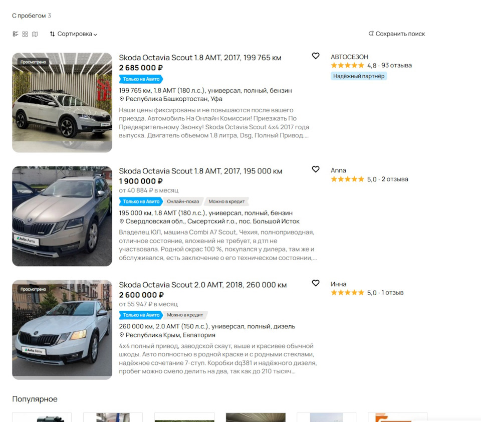 мы видимо живем в параллельных вселенных. на моем авто.ру есть один скаут рест. а вот на фото ресты с авито. скинь ссылку на обьяву