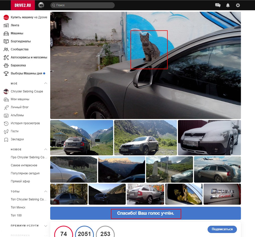Я езжу на Skoda Octavia Scout /Hound of Winter/ (до этого — Hyundai Elantra и Hyundai Accent)