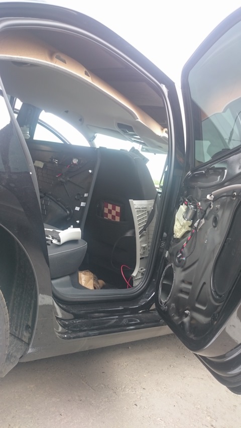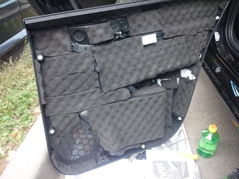 - Шумоизоляция задних дверей + протяжка провода под динамик
