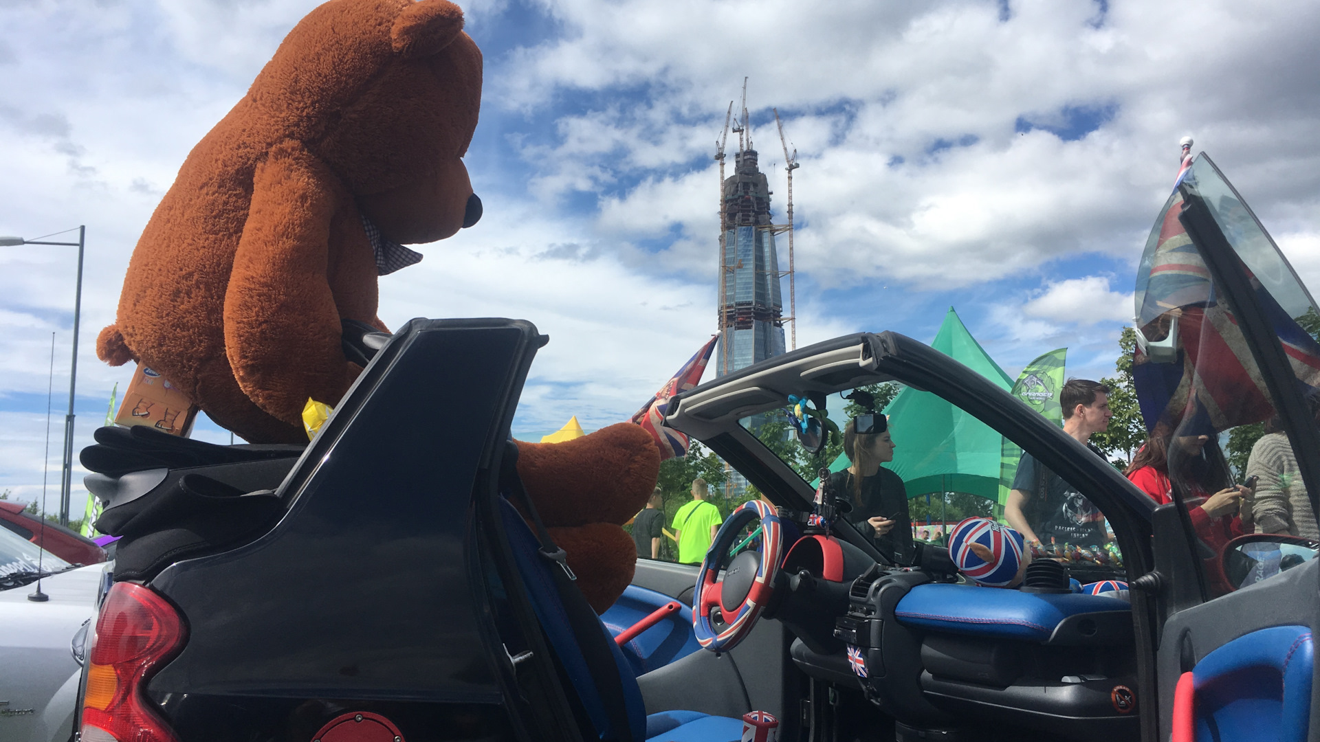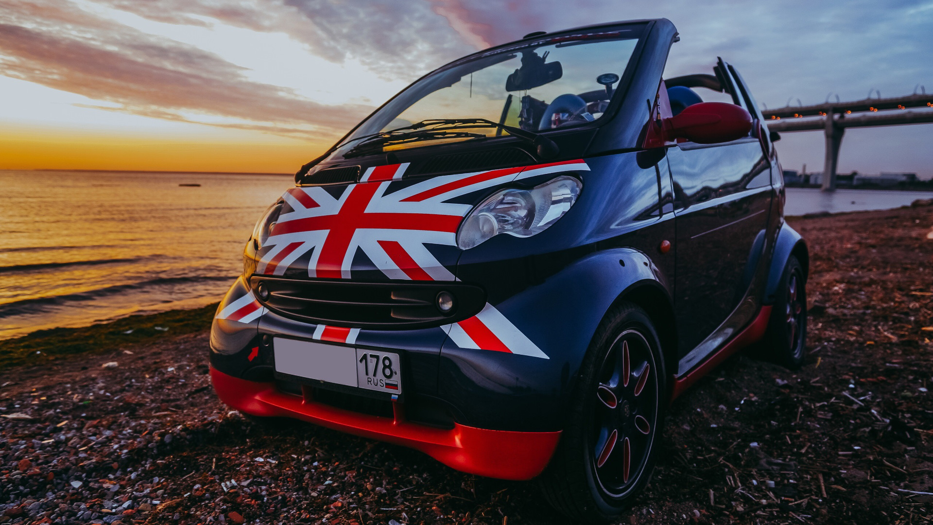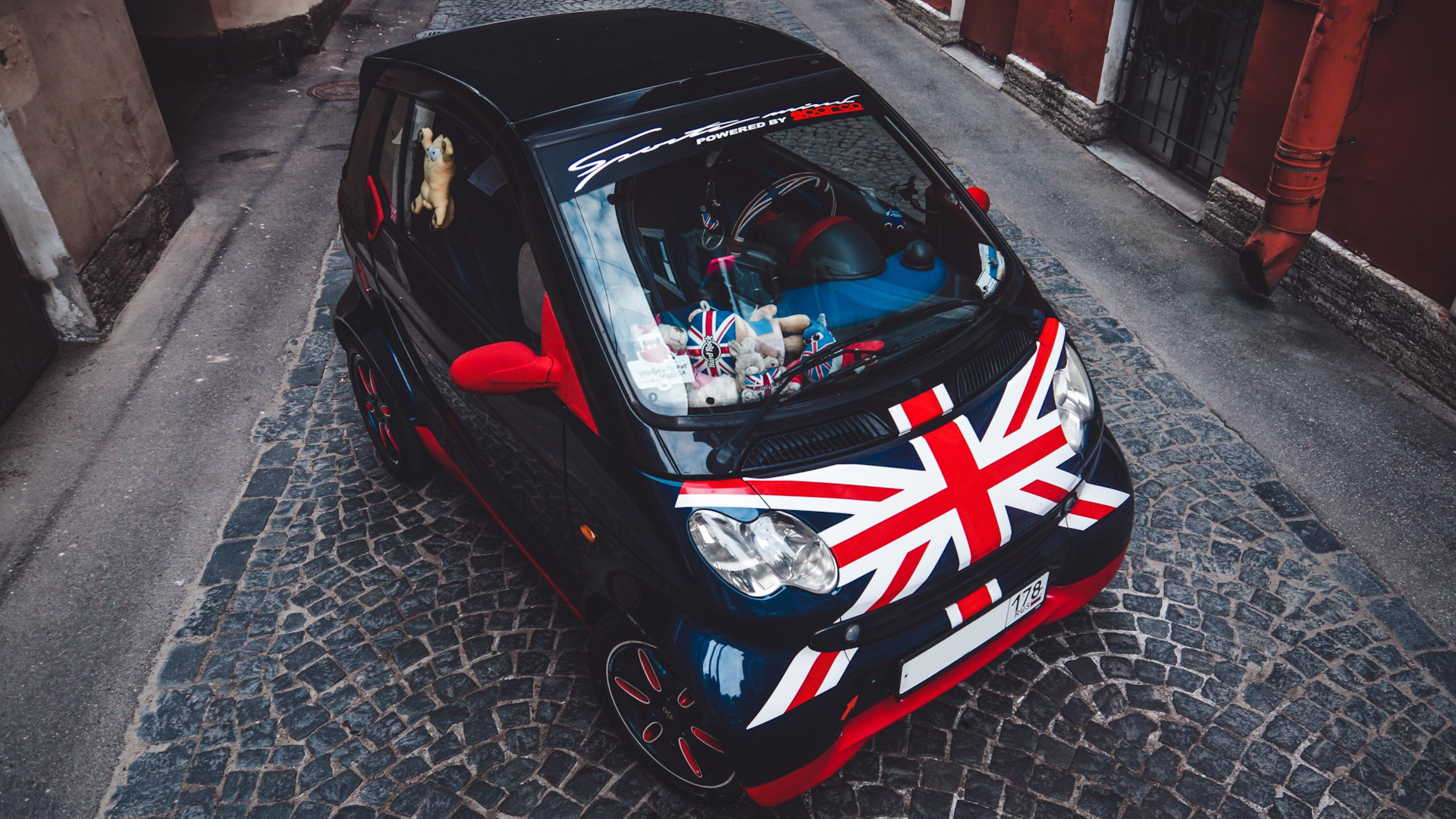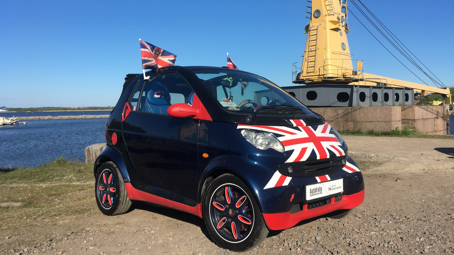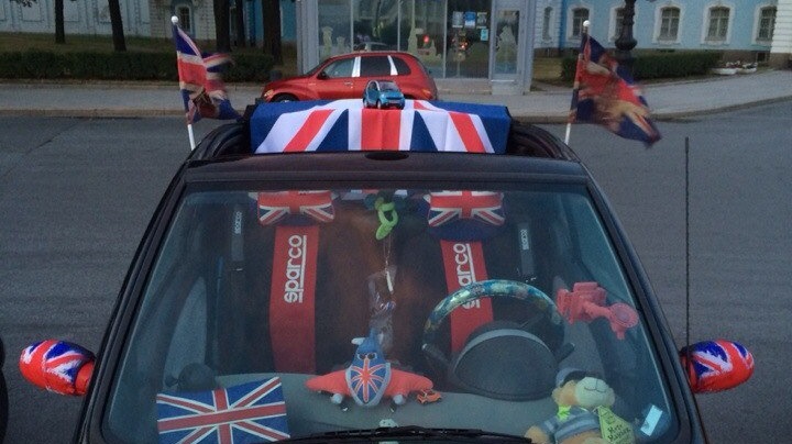 Не останавливаясь на достигнутом, появилось желание индивидуализировать своего Карапуза! Появилась неожиданная идея, такая же, как появление самого Карапуза в моей жизни), стилизовать его в Британский стиль! Винил, Жидкая резита, зеркала, подголовники в салоне, всевозможные аксессуары, мини моделька Карапуза на торпеде, флаги с личным дизайном и гербом, шлем — появлялись со скоростью звука в Карапузе.