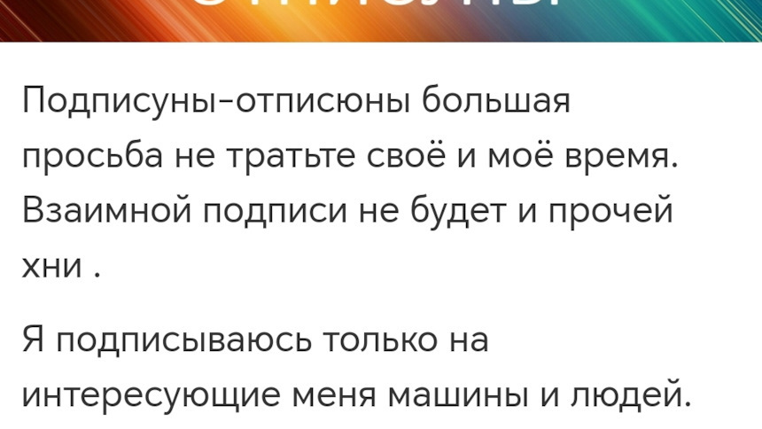 ПРОСЬБА! НЕ ПОДПИСЫВАТЬСЯ, РАДИ ОТВЕТНОЙ ПОДПИСКИ! МНЕ ЭТО НЕ ИНТЕРЕСНО! ЗА ДРАЙВОМ НЕ ГОНЮСЬ! ПОДПИСЫВАЮСЬ ТОЛЬКО НА ИНТЕРЕСНОЕ ДЛЯ МЕНЯ.