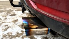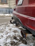 зацеплен передний бампер…при выезде с гаража .и не совсем удачно покрашен(