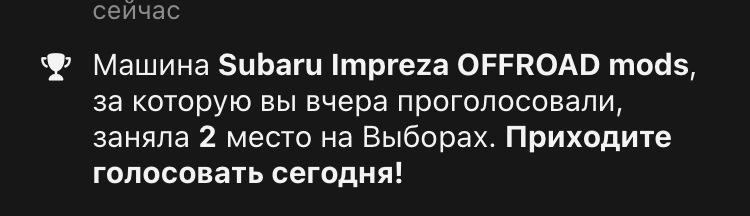 в выборах очень часто всякая фигня выигрывает. Вот просто показательный момент субару которая используется по назначению и весь драйв который является реально драйвом. И субару, которую просто всякой мишурой обвешивают и тупо фотают.