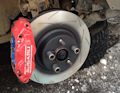 Suspension & brakes — передняя верхняя распорка STI, распорка подрамника cusco 4 точки, усиленные кастерблоки, красные STI-перевёртыши перед, KYB Ultra SR зад, задняя верхняя распорка cusco, тормоза — 4pot 294мм перед (DBA Street T2 Slotted + Dixcel ES), 2pot 290мм зад (DBA Street T2 Slotted + Endless SSY)