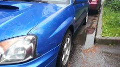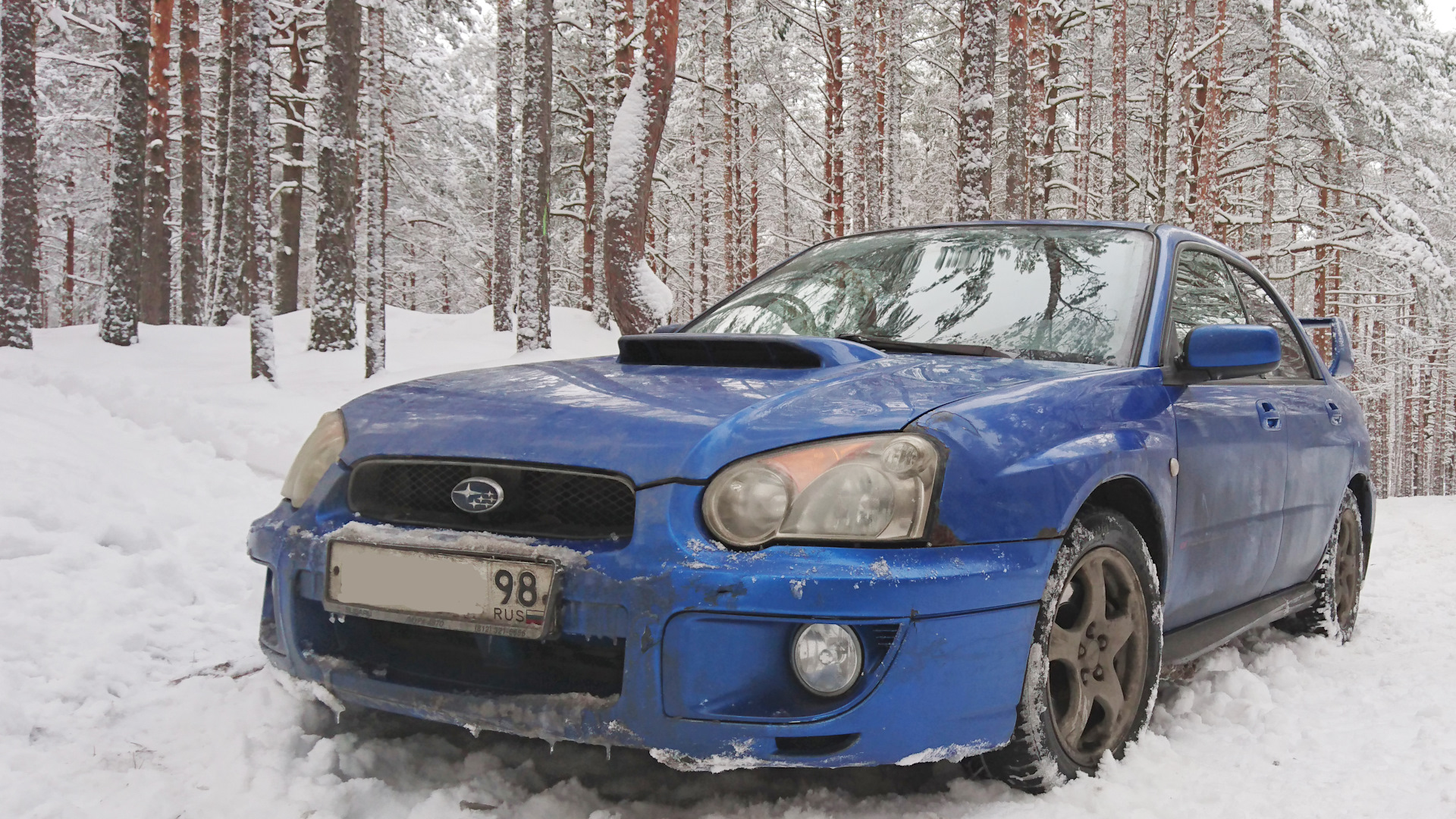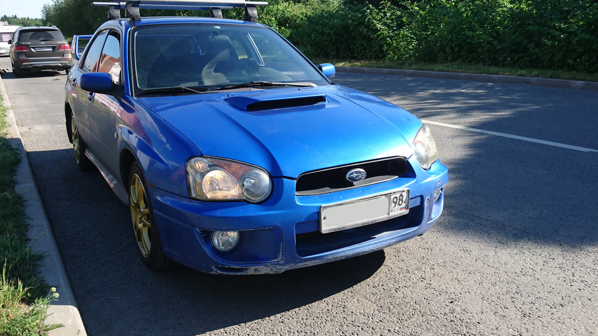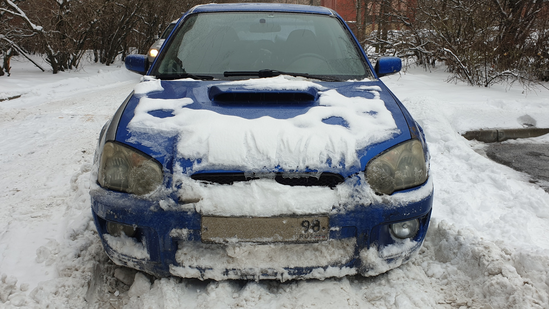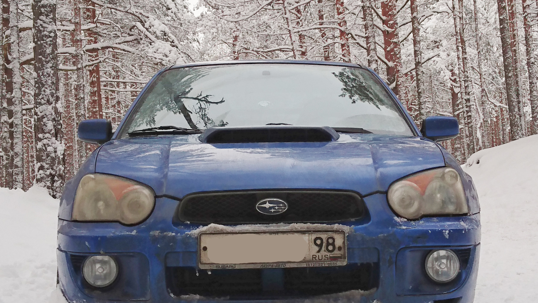 Impreza WRX 2003 год, европейка. Куплена с уже несколько помятой моськой, собранной на пластиковых стяжках (решётка, бампер, — всё на стяжках :) ). Всё это я видел, претензий прежнему владельцу никаких, он продавал/я купил, более того он помог поменять сцепление и вообще можно к нему обращаться если нужна помощь с запчастями там например.