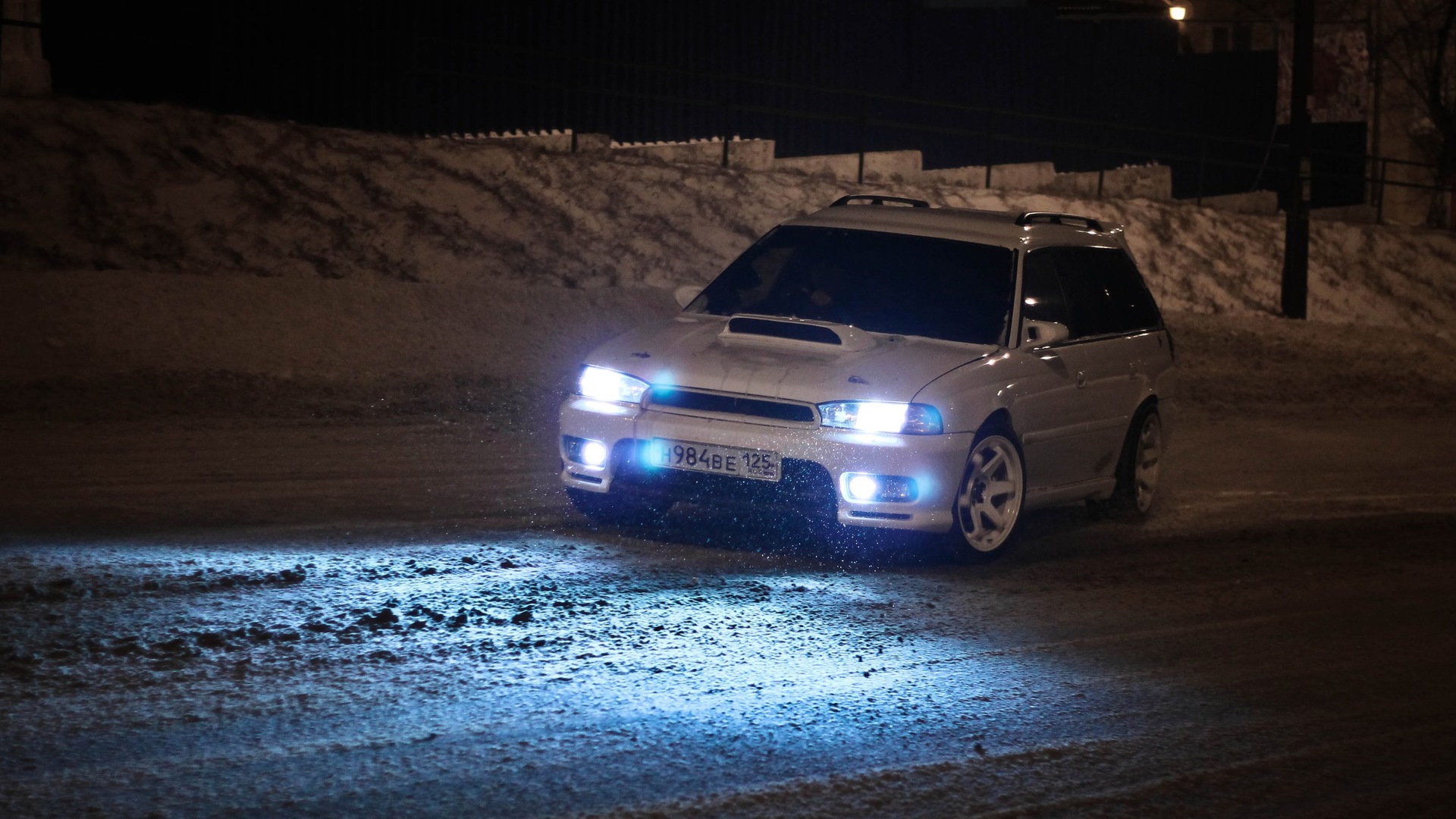 В далёком 2006 )) зимой, идя в институт я увидел её в первый раз…вылетала из поворота боком, я остолбенел!Этот звук, эта мощь!Ни скажу что я сразу же захотел именно Legacy, но выбор марки следующей своей машины я сделал — SUBARU!Спустя где то месяц моего марка девяностика забирает друг!И я начинаю подыскивать себе авто!Удивительно — но на drome я натыкаюсь именно на неё!Но денег не хватает!Принимаю решение всё таки поехать посмотреть!Если всё устроит, буду что-нибудь думать!Звоню, договариваюсь о встречи…мне говорят "можно в мастерской посмотреть!"Поздно вечером приезжаю туда и вижу разобранную машину!Коробка рядом на полу, ещё какие то детали, тут я заволновался!Мне говорят все нормально, просто 3-я передача не включается!Короче чё то в коробке разлетелось!"через пару часов можно будет уже протестировать" — говорят мастера!Ладно, успокоили! )) Машинка мне понравилась, мотор уже с твин турбы был переделан на одну, коробка, нормальная музыка, набор датчиков Defi, recaro!Принимаю решение найти денег в ближайшее время чтоб забрать её!Пока искал, прошел месяц, наступил 2007 )) Объявление так и висит, звоню опять, еду смотреть, но уже хоть не в мастерскую!К этому времени он поставил передний тюненый бампер, машинка стала смотреться ещё лучше!Прокатились… динамика ахрененная!до этого я ни когда не ездил на турбо! ))) Всё устраивает!Даже цена упала, но зато не стало ни датчиков defi, ни магнитофона с динамиками, ни recaro!Во общем я решил её забрать!